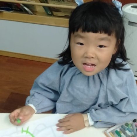 This week, we’re working on art projects in Ladybug B. We’re doing coloring, using shapes, and using glue! It’s very fun.