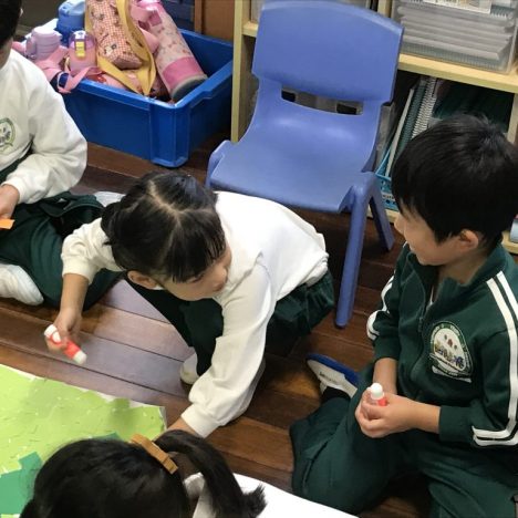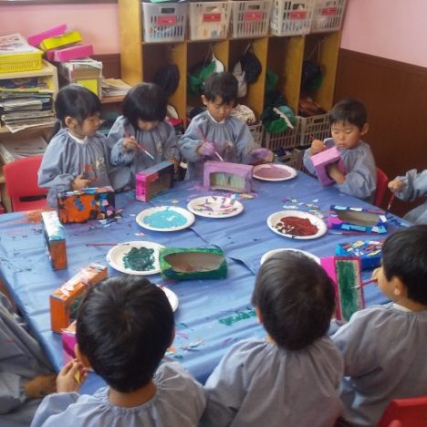 It’s been a month since we started the junbi class. There were lots of tears at first but they are all starting to have fun. This month we did some finger paintings…