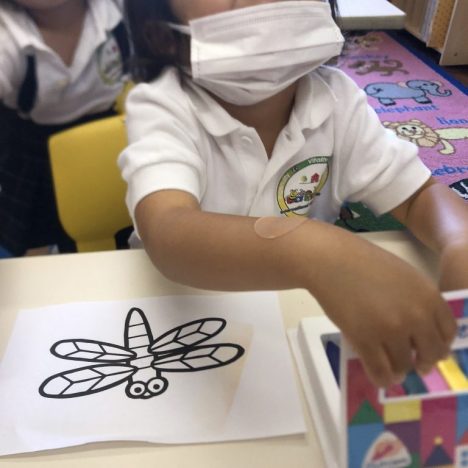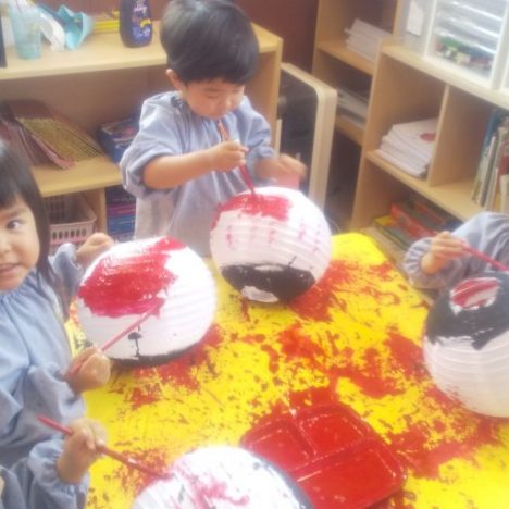 This week, we’re preparing for Tanabata in Ladybug class! We made fans, wrote wishes, and painted lanterns! It got a little messy, but we had a lot of fun!