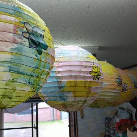 We spent the week getting ready for the upcoming Star Festival by coloring some dragonflies and painting our lanterns. Here are some pictures of Bumblebee B preparing for the festivities.