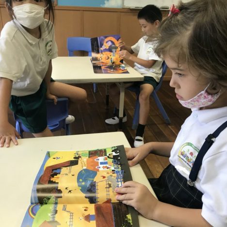 We try to work on our reading skills everyday and the class reader we are currently reading is, Fox, Not Ox! The children follow along with their fingers and repeat the sentences after…