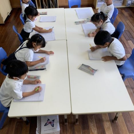 The butterfly class has been working hard on their writing. They enjoy writing about their days, writing letters, and even spelling tests! They are getting better everyday. Good job, butterflies!