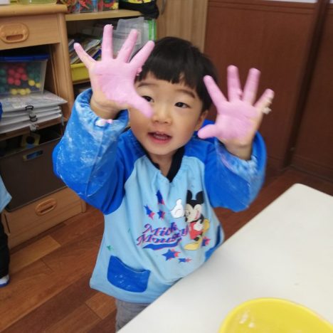 We have four new students joined us this month. A big welcome! Our little ones had fun doing some hand-paintings and playing with play dough.