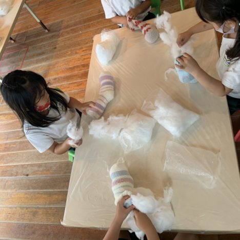 Finally, here is a short blog about our fun day with an art teacher. A new teacher came to school and taught us how to make these sock creatures with a rattle…