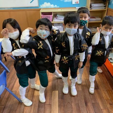 We recently celebrated Setsubun and threw beans at the mean old demon. We chased the oni around and had a grand old time wearing our demon masks.