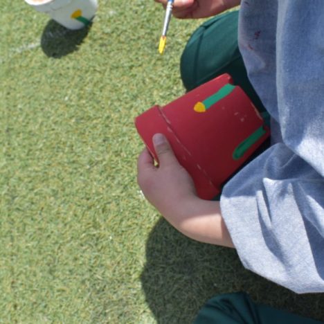 We spent time decorating and planting our pots for the flowers. We also have been trying out using water color paints.
