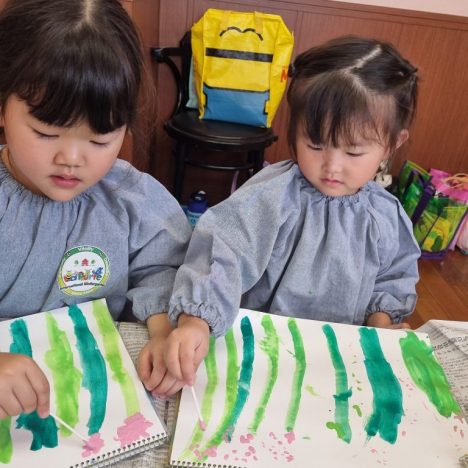 We learnt a simple way to paint flowers using cotton swabs to create the flower petal clusters. The flowers looked so pretty!
