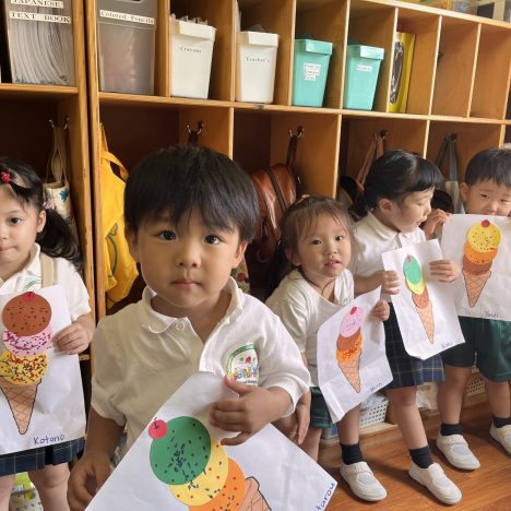 We made something for summer, an ice cream craft! We chose our own colors to represent the flavors we like, with a cherry on top. Then, we added some sprinkles. It looks…