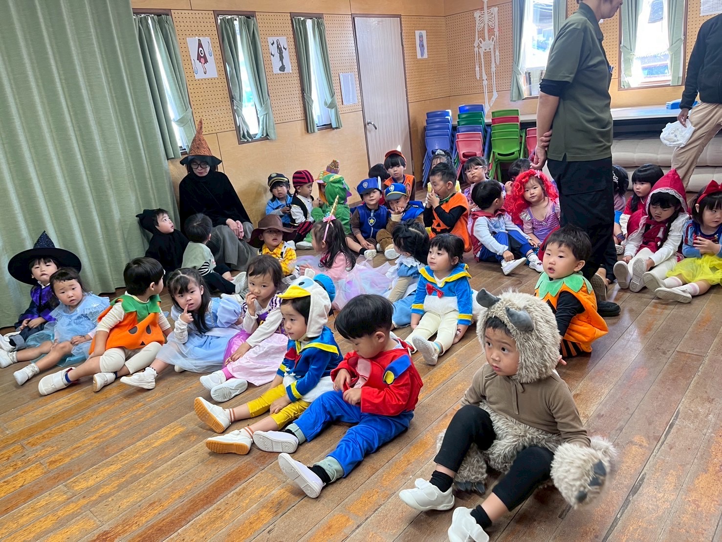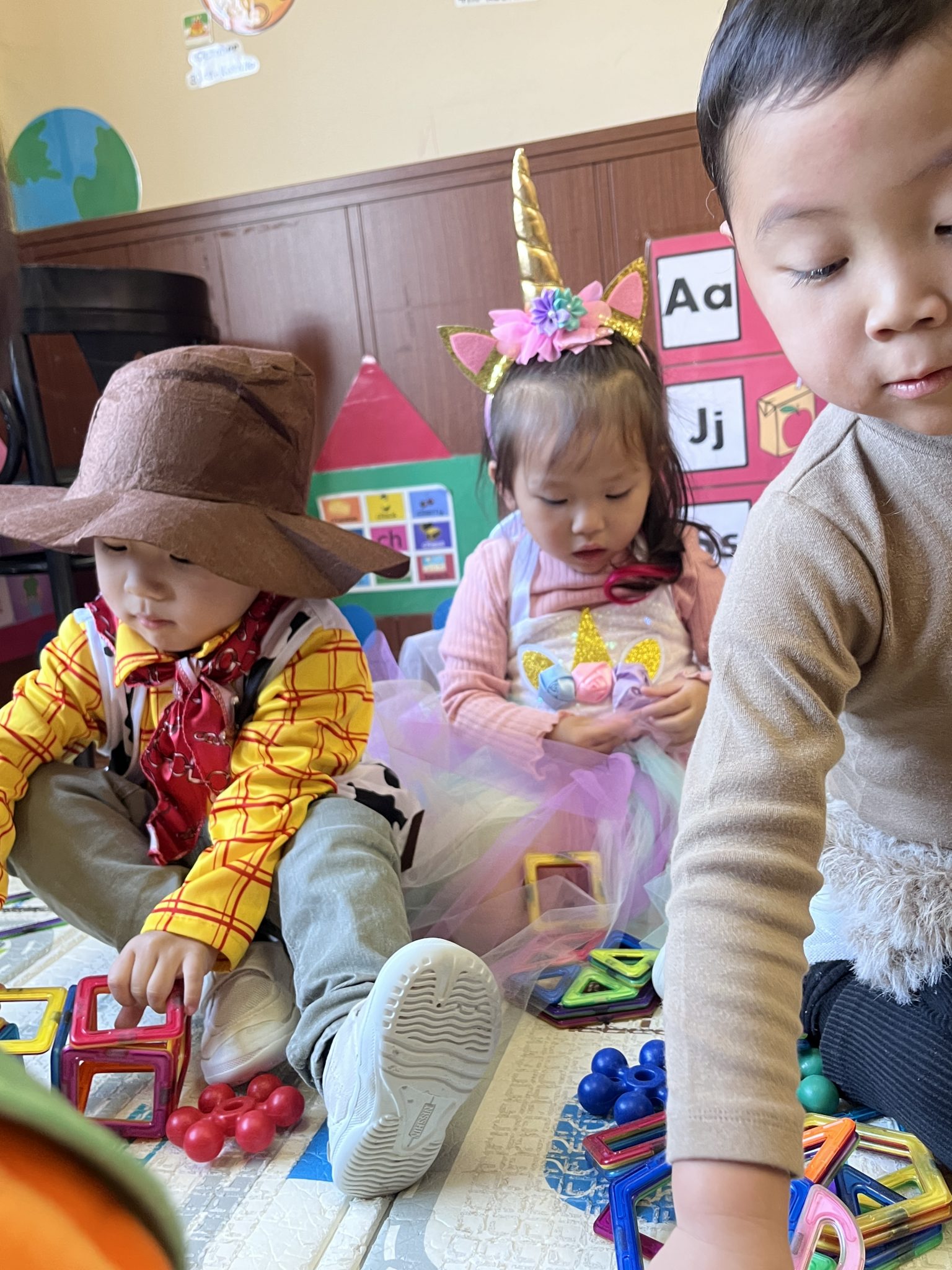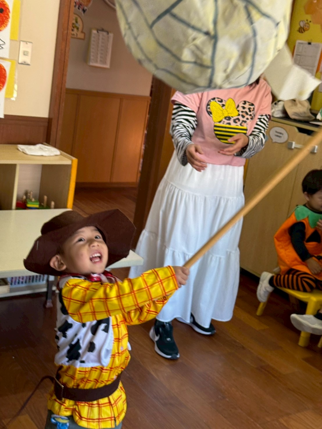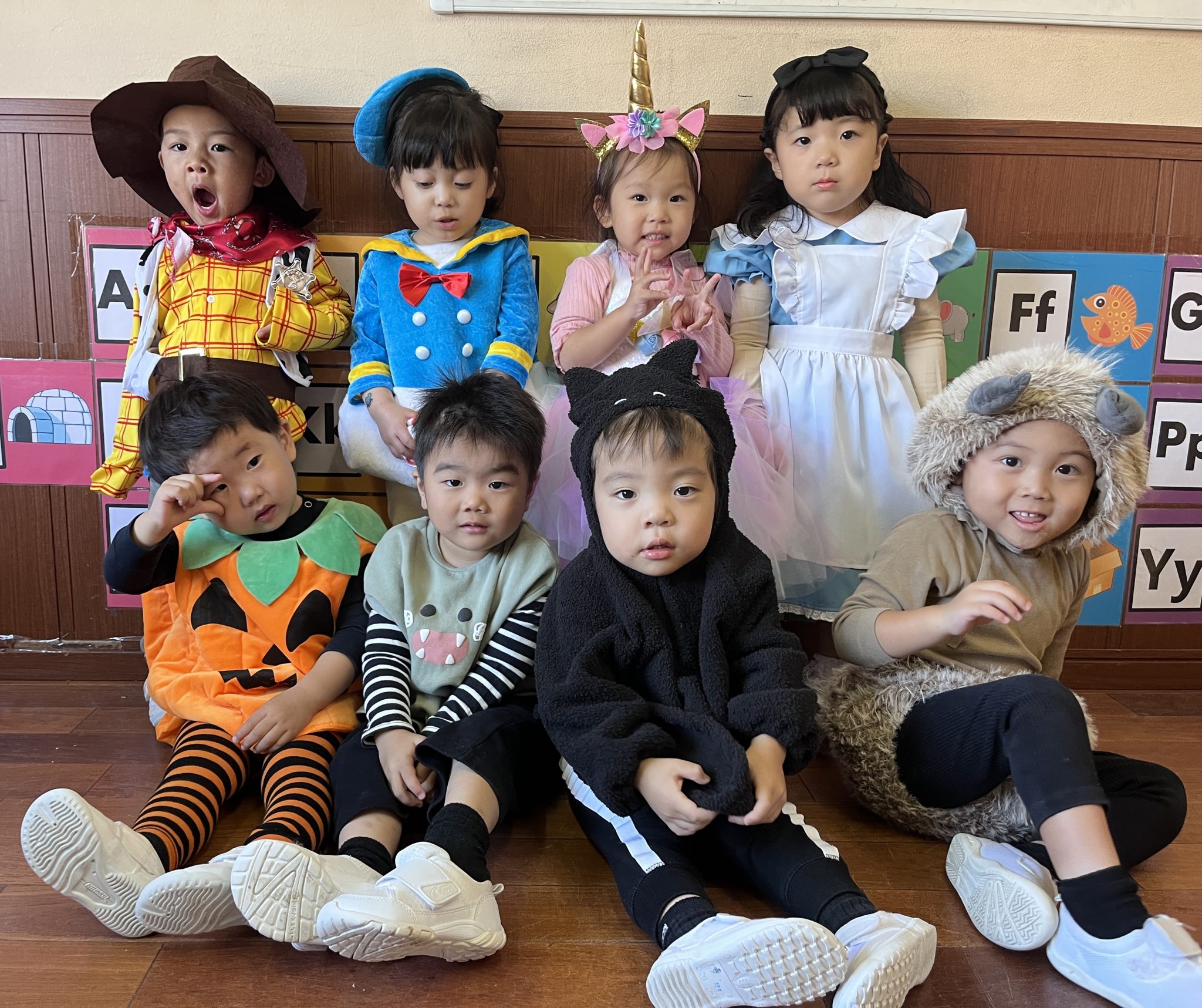 It was a successful Halloween party we had last week! We carved pumpkin jack-o’-lanterns with triangle eyes and made monster and pumpkin art. We had so much fun wearing our cute and BOOtiful costumes and playing lots of Halloween games.We also made it through the witch maze. It was scary at first, but we conquered it with the BBA.We even got stickers from the piñata mummy that we successfully broke, and of course, we brought home some Halloween sweets that we were so excited to eat!