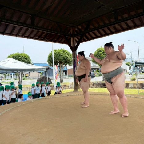 We had sumo visitors from the Sadogatake stable. It was so fun and we learned a little about the sumo wrestlers. Teachers tried fighting the sumos, and didn’t win. Mr. Jay was…