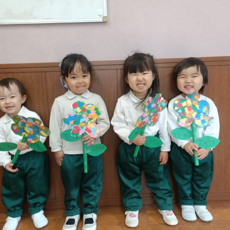 Junbi students made a flower craft to welcome spring. We had fun painting and gluing.