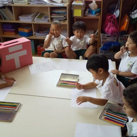 This week, we had a special art activity. We painted lanterns for Tanabata! On Friday, some Sumo wrestlers visited the school. Thet were so big! We had a lot of fun.