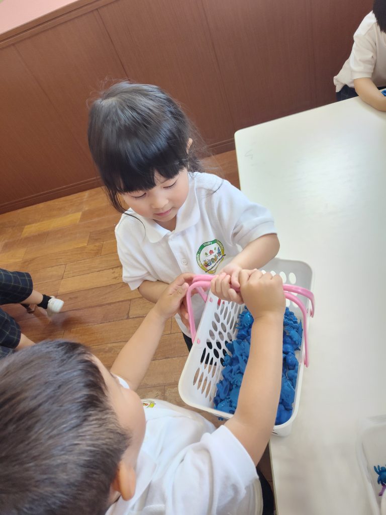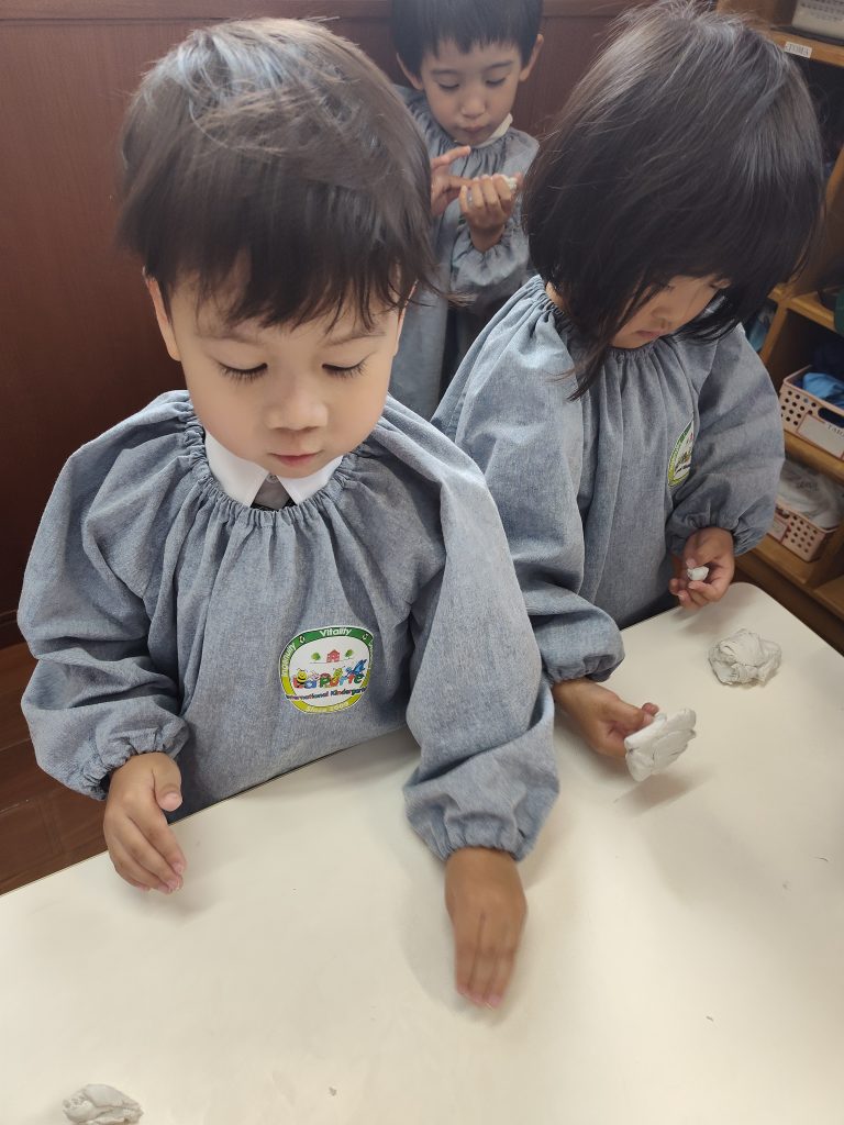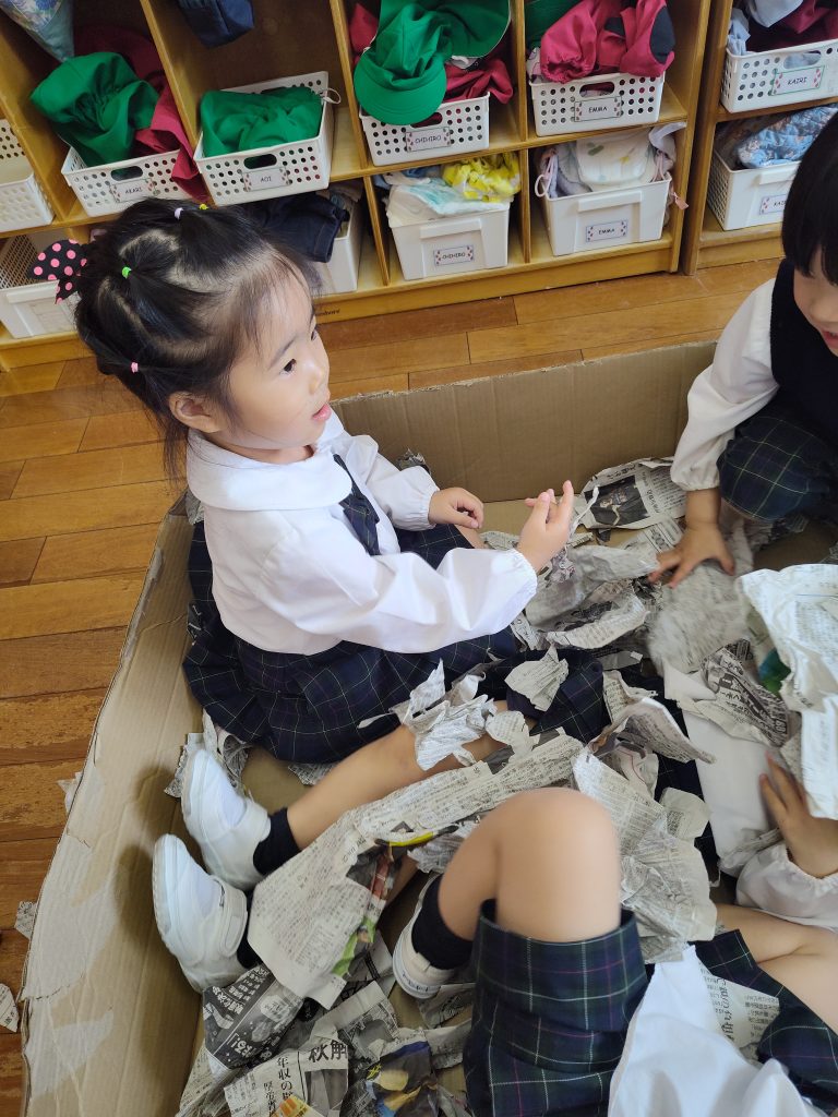 Since starting Creative Time, we have had a lot of fun playing and exploring with the other Ladybug class. We’ve splashed around in the newspaper pit, looked at things under a magnifying glass, made pizzas, made clay creations and sorted lots of colorful things! It’s been a blast!