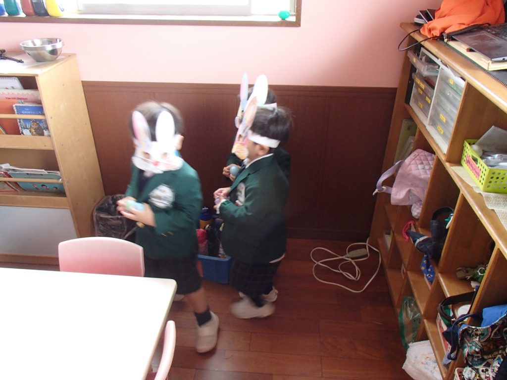 Easter Fun 2026年4月20日 Ladybug A We had our yearly Easter Party this week. There were many fun thing to do, we made rabbit masks, Easter baskets, had an egg and spoon race, and hunted for Easter eggs. Newer Post Easter party! Older Post Easter Fun All Day