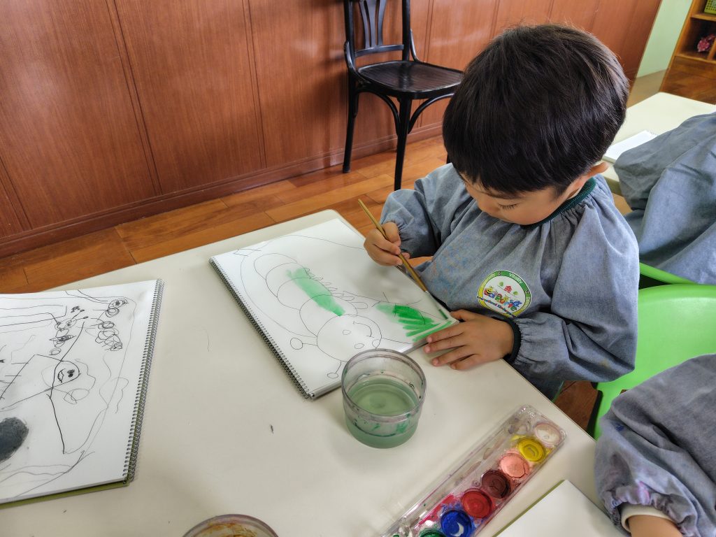 We had our fist day of caterpillar class today! We painted a caterpillar painting.