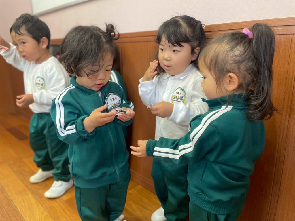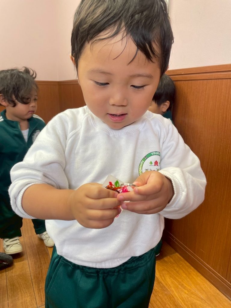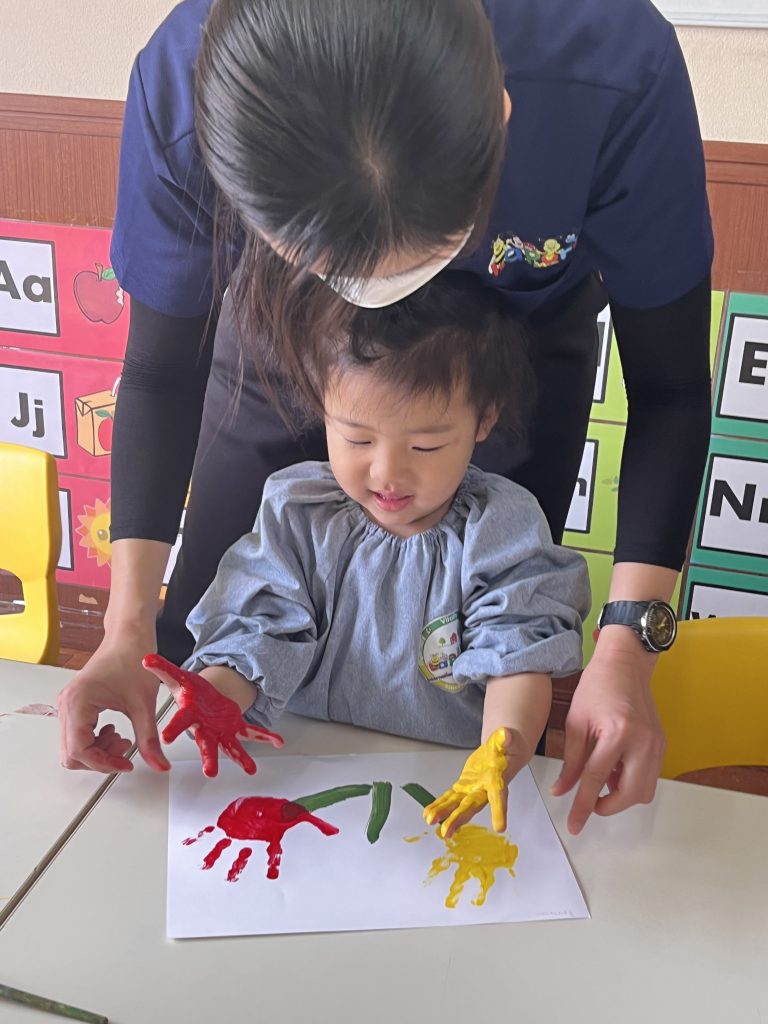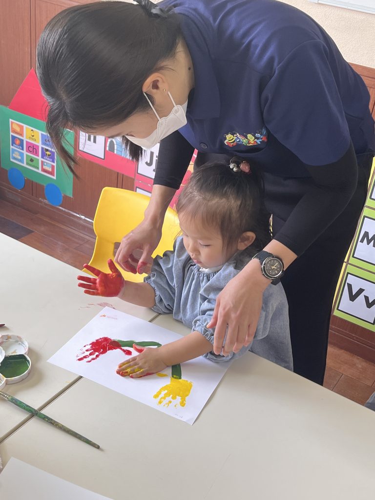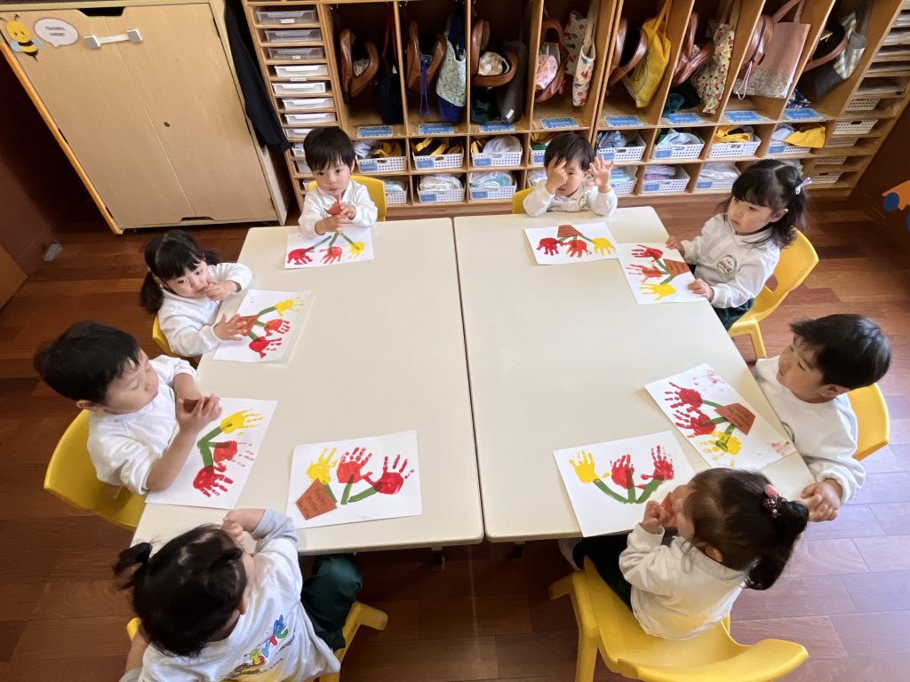 We made something special for our moms—something that will make them happy because we created it just for them. We made keychains that had to be baked to become real keychains. It was like magic—they shrank down to mini sizes! We were so surprised! We also made cards for them using our colorful handprints. It was so much fun!