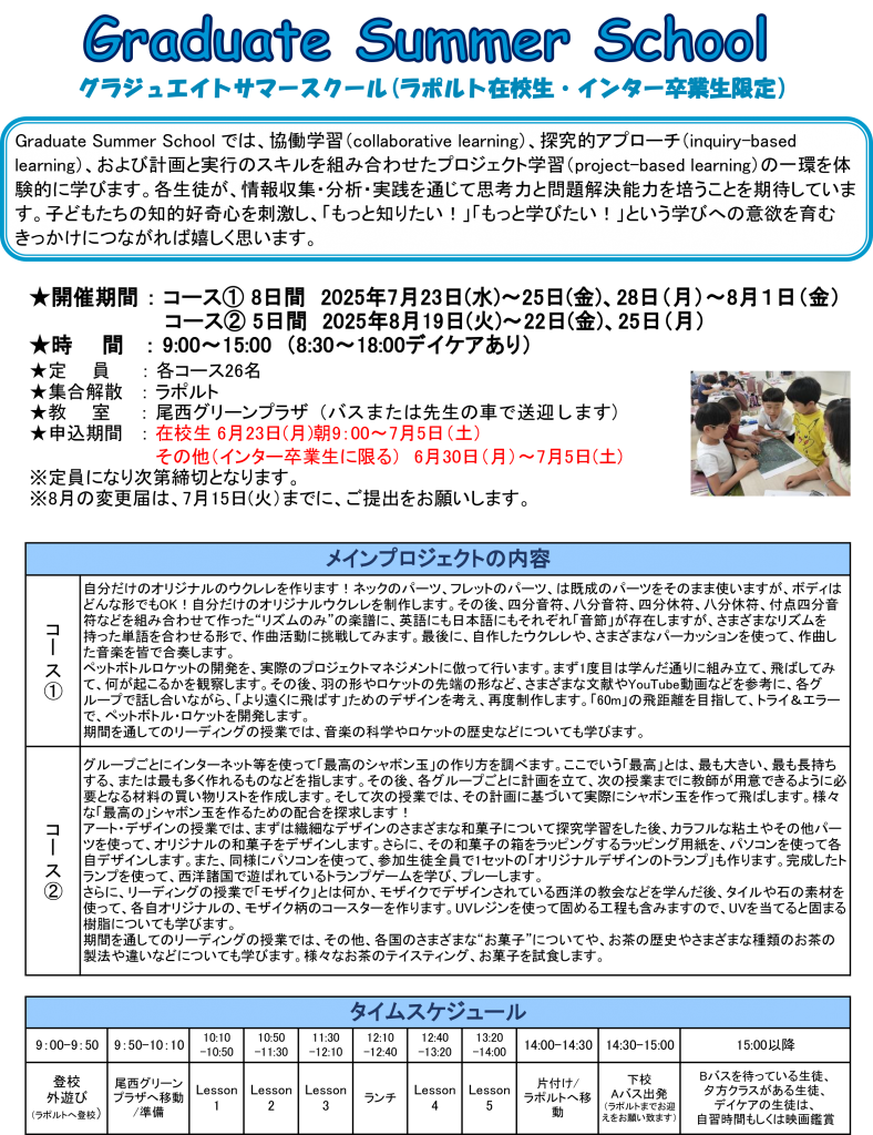 グラジュエイトサマースクール 2025(インター卒業生限定)