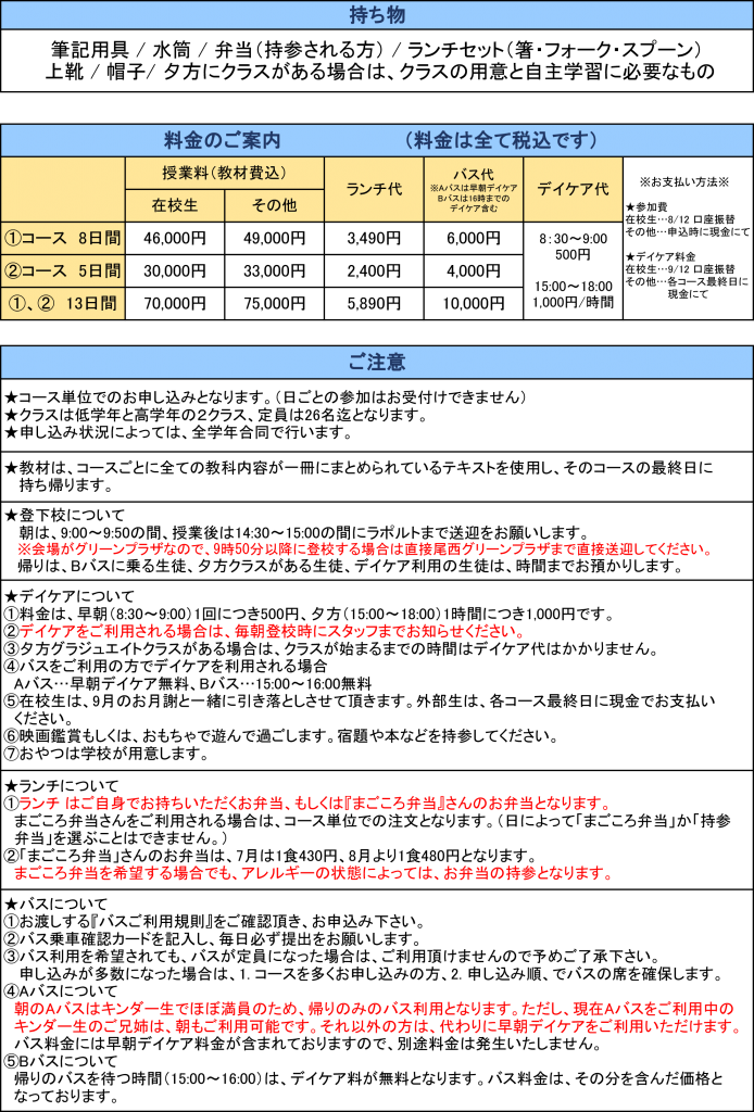★★インター卒業生限定の特別サマースクール★★