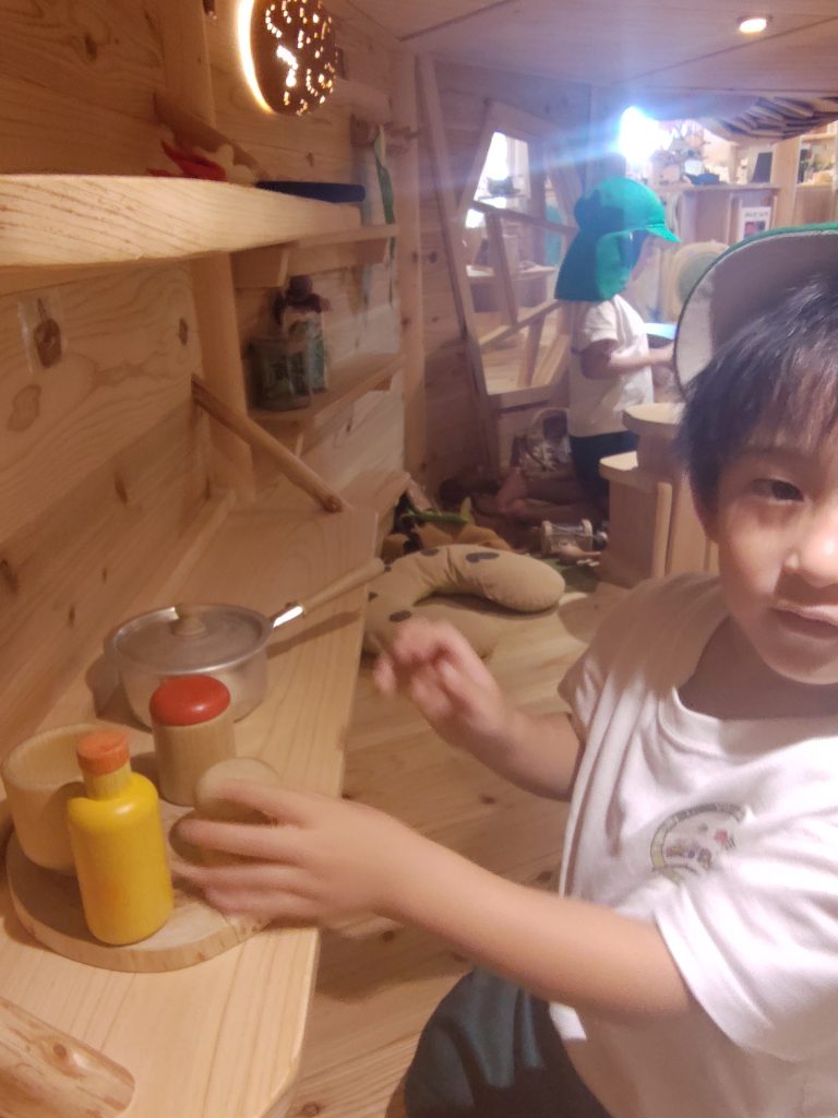 Both ladybug classes had a fun time climbing and exploring the wooden indoor park. It was fun pretending to cook in the kitchen, checking each other out in the small store and finding different nooks and crannies to explore!