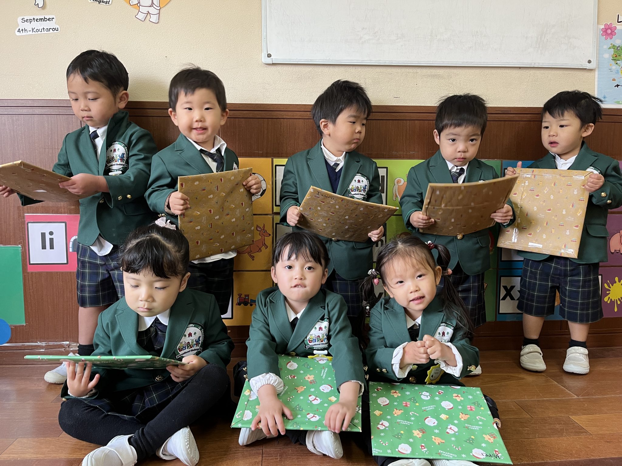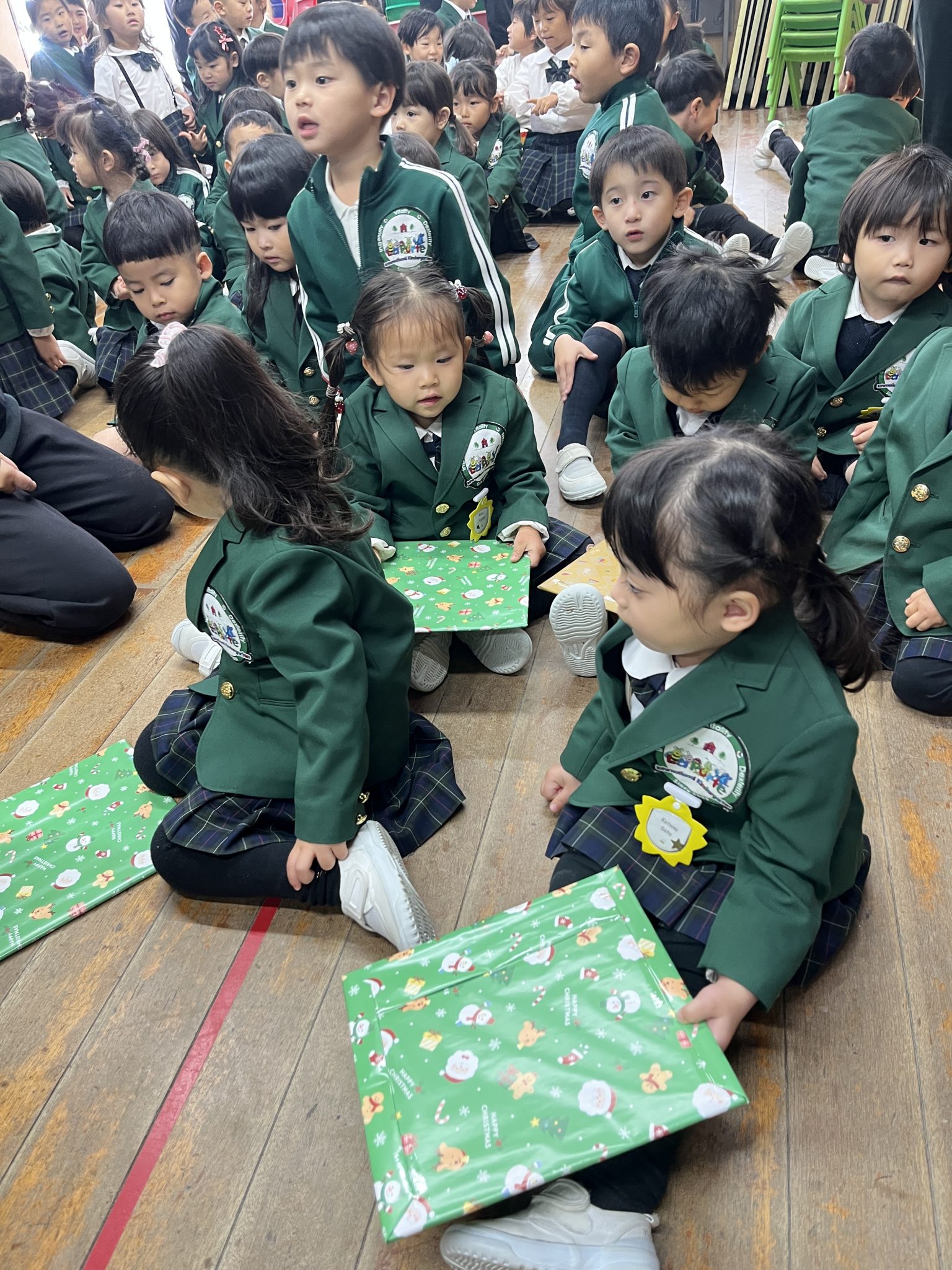 Merry Christmas! 2025年12月29日 Bumblebee B We had a great time at our Christmas party, especially when we saw Santa Claus. We sang songs and received a present from him. We also ate a yummy Christmas cake and made some crafts. What a merry Christmas indeed! Newer Post 新年のご挨拶 Older Post Playful learning