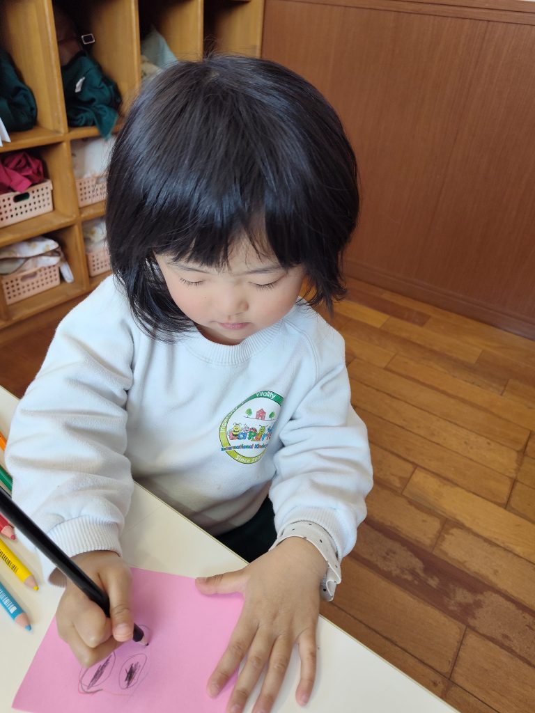 Ladybug A kids had a fun time designing their own custom name plates for the boxes in their lockers. We also brainstormed some ideas for wall decorations. We came up with: butterflies, ladybugs, bananas, flowers, carrots, dogs and cats to name a few. They did their interpretations, even including some rainbows as well. It was so fun!
