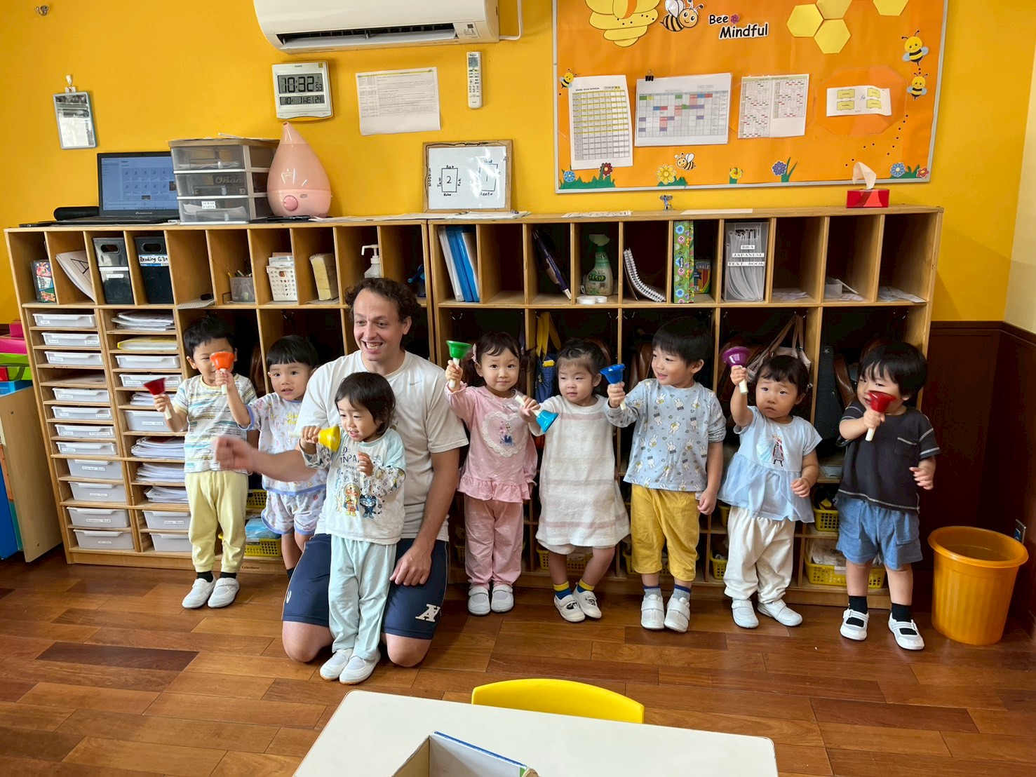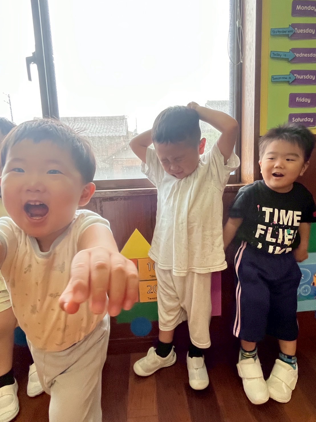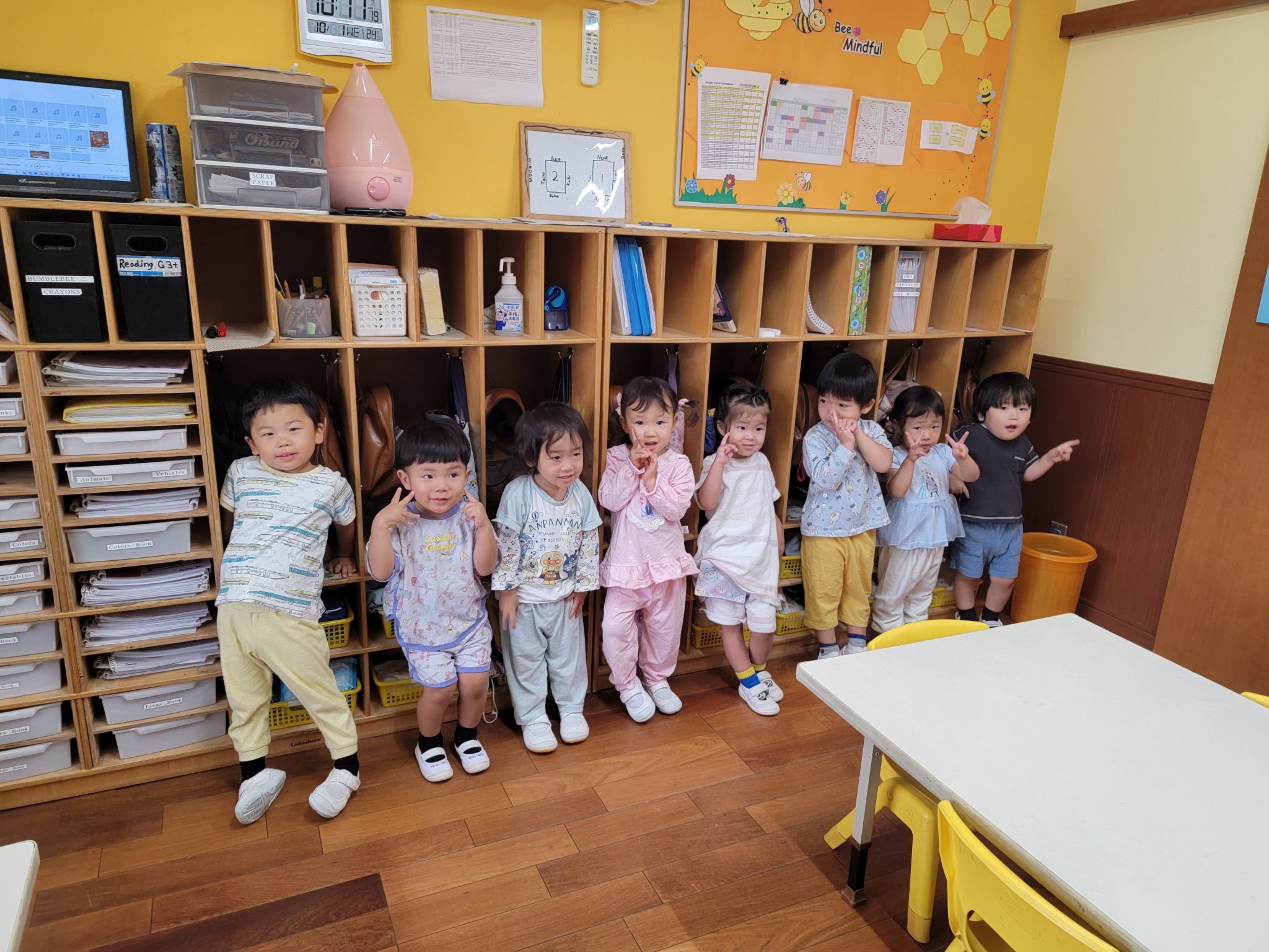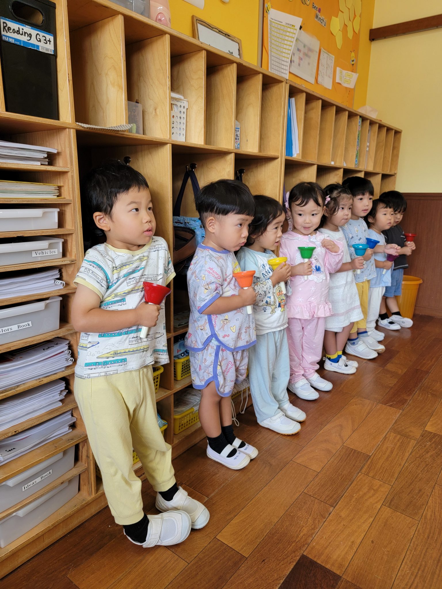 Everyone wore pajamas to school on Wednesday for pajama day! It was so fun, there were many princess pajamas, animal pajamas, and even Anpanman! Bumblebees practiced with their musical bells for the first time and even played outside. Super comfortable!
