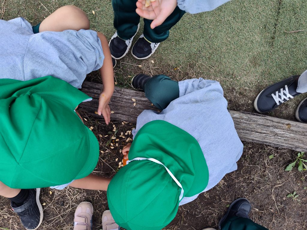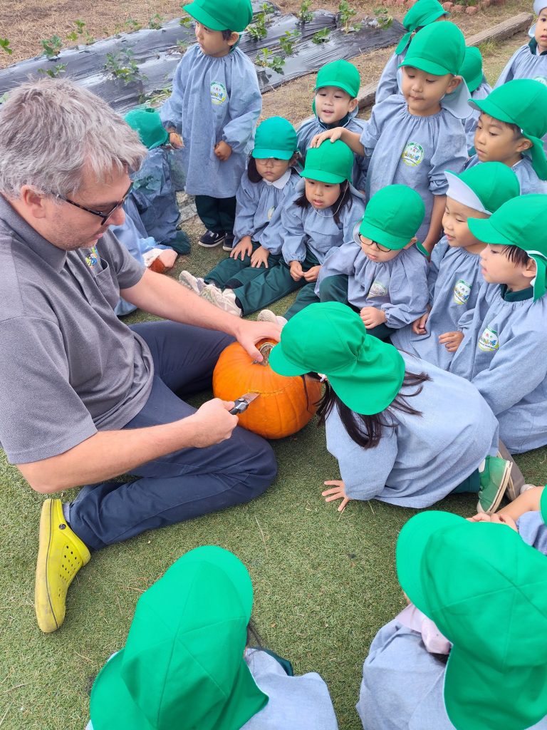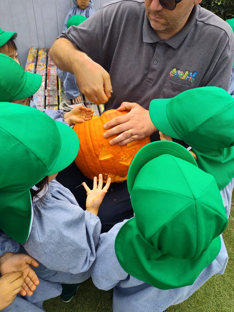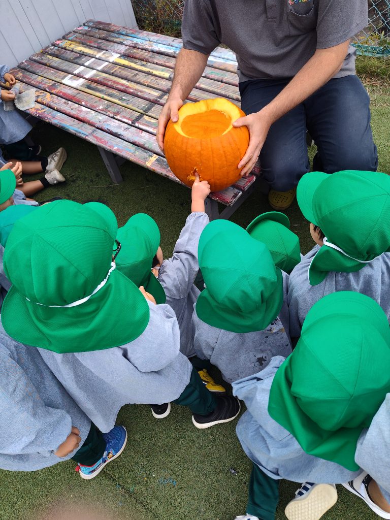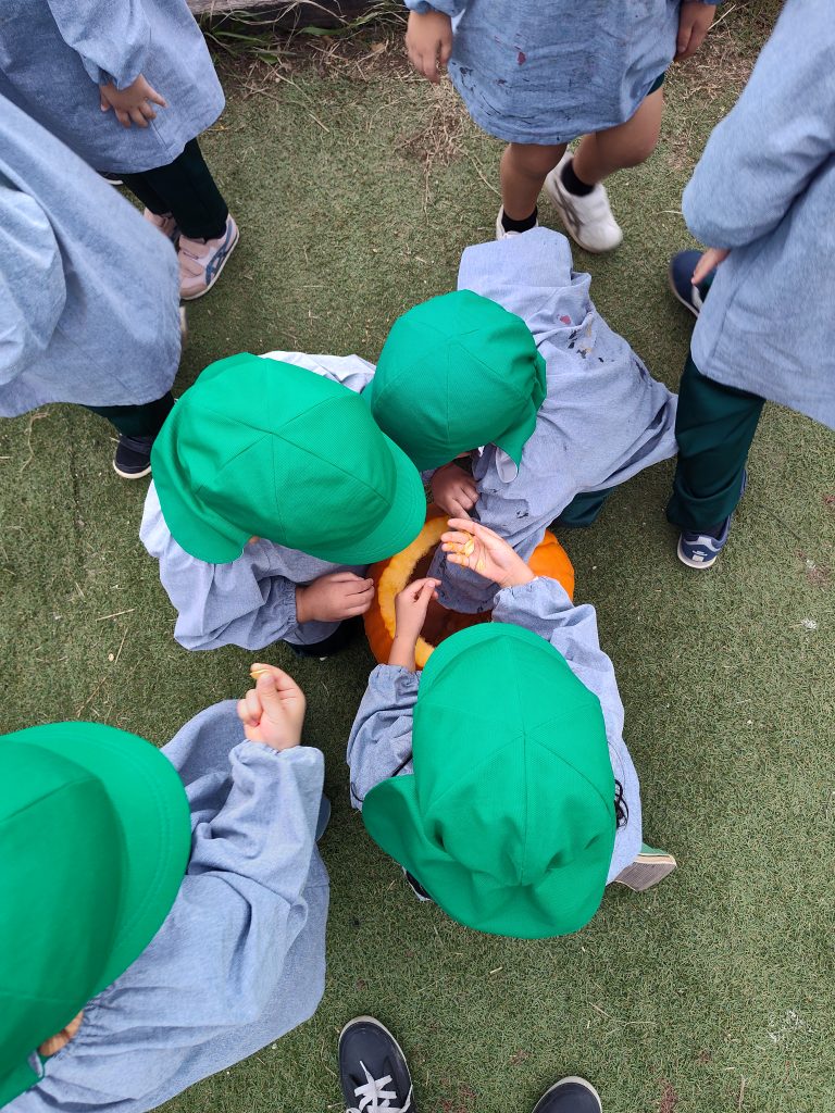 Ladybugs got to go outside and assist Mr. Will in making some Jack-O-Lanterns. It was such fun deciding if our face should be happy or sad or even angry and getting to scoop out the seeds and guts. Although, our hands were quite yucky afterwards. But we had a blast!